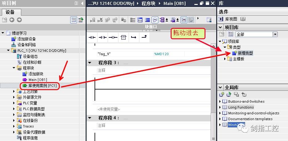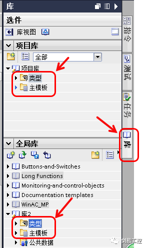 主模板:基本上博博途里的所有对象都可以保存为库里的主模板,可以是PLC的硬件组态,可以是整个设备,也可是是用户自己编写的FB/FC/DB等数据,但是确定是不能进行二次开发(不能更改已经放到库里的程序)