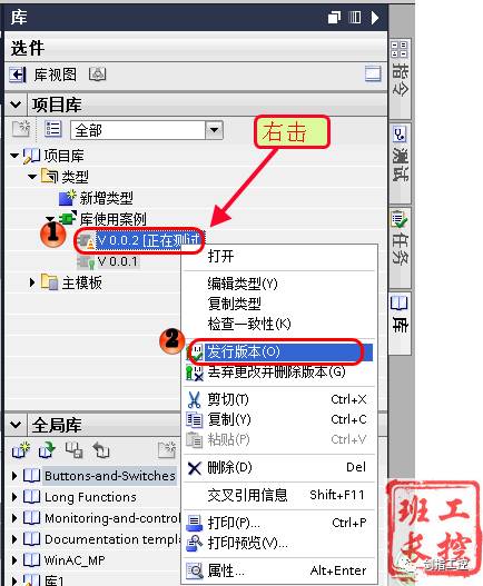 类型:存储用户自己编写的FB/FC/DB等数据,有版本号,可以对里面的内容进行二次开发(更改已经放到库里的程序)