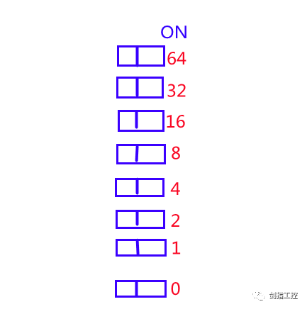 举例,比如软件里设置的地址是10,拨码需要把8和2拨到ON的位置(特别注意0号拨码开关为无效位,不使用)