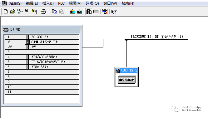 重新打开硬件组态界面,开始进行EM277的组态