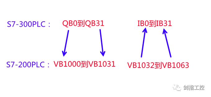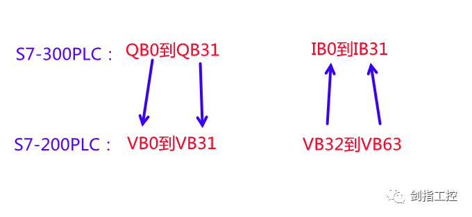 映射关系为:300PLC的Q区和I区分别对应200PLC的V区