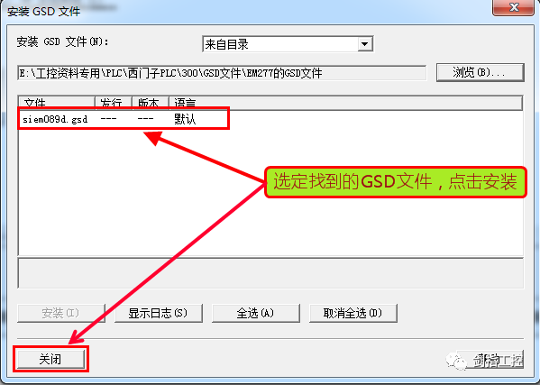 导入EM277的GSD文件,(西门子的硬件中是EM277的,我们需要导入一个GSD文件,让西门子的硬件组态中支持这个原件)