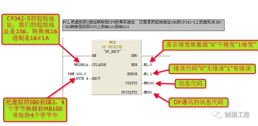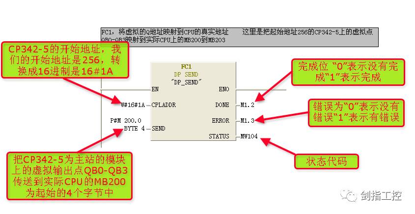 上图中的意思是:把起始地址256的CP342-5上的虚拟点IB0-IB3映射到实际CPU上的MB100到MB103