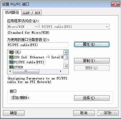 接口分配参数出那些接口名称上多了一些点,而且原先底部应该有的接口添加/删除选项也没有了。最重要的是点开PC/PPI cable(ppi)接口参数属性设置的本地连接处竟然不能选择COM口,这就奇怪了,我的PPI编程线是已经装好了驱动了的,在设备管理处也能看到COM口,而且之前也是能通讯的,按照正常来说这些界面应该是以下这个样子的。