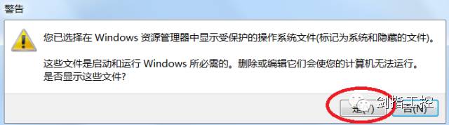 2、取消勾选“隐藏受保护的系统文件”,将会弹出警示对话框,点击“是”,然后点击“应用”,即可显示出hosts文件(不带后缀名的那个哦)