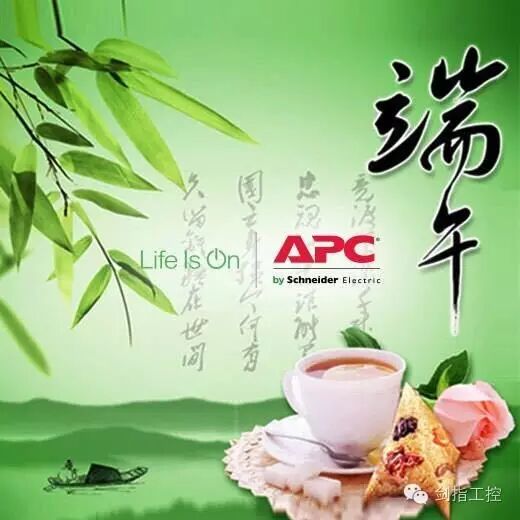 第二个出场就是施耐德,因为没有施耐德电气官方没有发出端午祝福照片,所以笔者就是找到了施耐德旗下APC的祝福照片,从这幅照片依然能窥探出来一些端倪,就是施耐德这些年一直在走绿色能源路线,从端午祝福照片也能反映出来,大胆用了绿色的背景不惜牺牲施耐德logo撞色,而把Schneier换成了黑色的logo。在内容上采用中西结合咖啡配粽子,其实就是告诉大家虽然是一家法国企业但很看重中国市场,咖啡和粽子边上还放了一朵花,就是意喻中西结合在中国大地会开放绚丽的花朵。不得不叹服施耐德市场部煞费苦心。