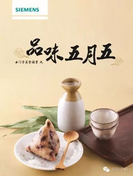 第一个映入眼帘的就是中国自动化市场领头羊西门子,从图上看画面淡雅,醒目的siemens的logo可以一眼让工控圈子里人看到,因为西家特意选择了棕色背景色,因为大家都知道端午粽子多数都是绿色,而采用绿色配上siemens的logo就会顺色,而变得不这明显,再从图中可以看到一壶青酒配上新鲜饱满的粽子,给人一种高雅的风格,也凸显西门子的厂商特点,产品质量不错,真材实料,给人一种看上去就实在放心的感觉。但不得不说西家在市场和战略上的眼光还是具有杀伤力的。Siemens品牌已经家喻户晓,深入人心。