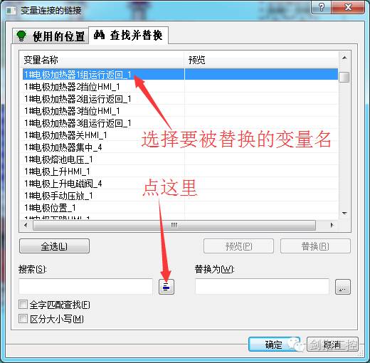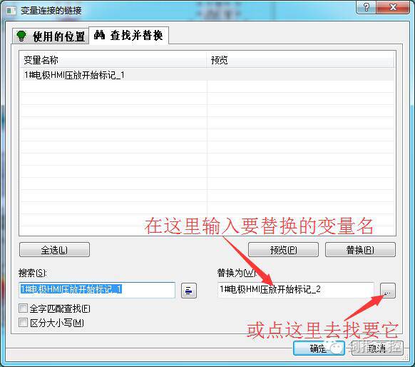 4.输入要替换为的变量名或点击输入域后面有三个小点的按钮去找到想要替换为的变量