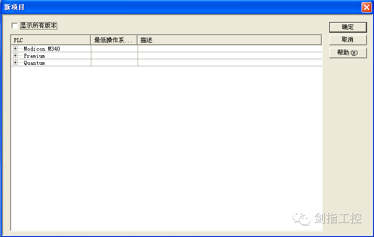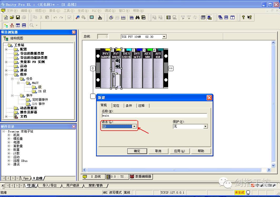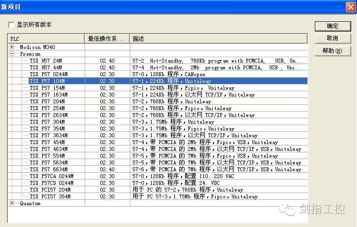 2.1.3 选择Prenium系列,TSX P57 104M CPU,点击“确定”