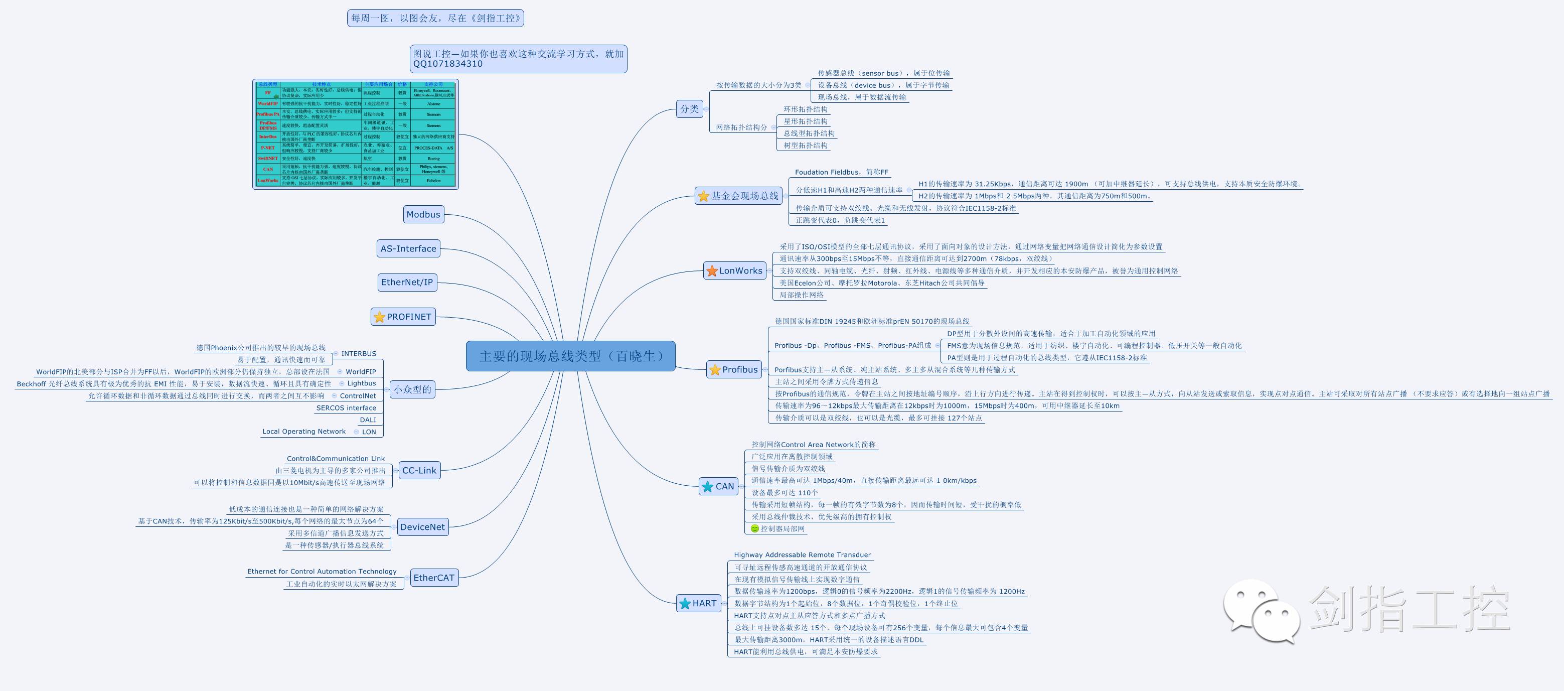 工控行业是一个知识广泛,纷繁复杂的行业,普通人无法做到样样精通,而很多时候现实却需要我们不断重新开始学习新知识新技术,这个行业大家常常都有书到用时方恨少的感觉。因此工控思维导图计划希望和天下有理想有态度的工控人通过直观的思维导图把各种知识进行重新构建,用最容易理解、最容易衔接的方式完成工控界的知识拼图,通过这种方式更加深入理解工控,并把知识反过来提升我们的效率!