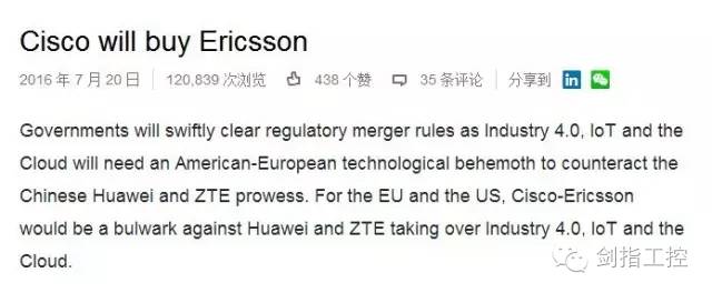 7月20日,此君在领英发布一篇博文,对思科收购爱立信事宜进行了一番展望,获得12万次浏览。