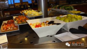 我们吃的全是在免费餐厅,除了有五六个晚上在西餐主餐厅、亚洲餐厅就餐外,其余都是在自助餐厅。自助餐厅全天24小时开放,有沙拉区、冷菜区、热菜区、主食区、烧烤区、匹萨和面点区、水果区以及咖啡饮料区。只不过在就餐高峰时,食物的品种多,食品种类可能达到近百种,如目前不是水果旺季,但也有苹果、香蕉、橙子、西瓜、哈密瓜、木瓜、葡萄、菠萝等近十种,饮料有橙汁、咖啡、茶、冰淇淋、牛奶、酸奶及盒装的软饮料,面包点心也有十来种,煮鸡蛋、加各种佐料的煎鸡蛋,匹萨、煎饼、烤饼、炸土豆饼,燕麦片、坚果片、水果干,培根、火腿、烤香肠、牛肉饼,面条、炒饭、各种粥,还有生菜、沙拉等等,有时还可以吃到烤肉、大虾。这么多食品,中国人还是可以找到较为接近我们口味的。就餐高峰过后,可能就只有饮料、面包、水果了。