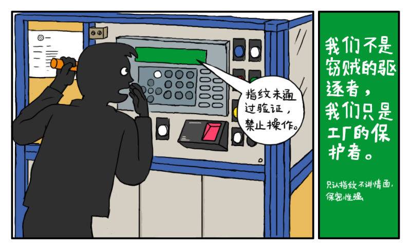 窃贼徒劳地按了半天,触摸屏上始终跳出:“指纹未通过验证,禁止操作”的字样。这个一无所获的入侵者,只得认命灰溜溜的离开……