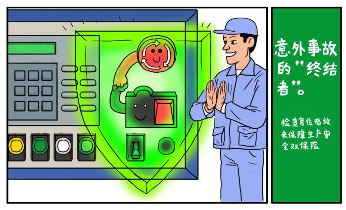 不一会儿,检修完机器的小李就走了过来,他正要转动复位按钮,才发现复位按钮已经解除了锁定。看到还在一旁纳闷的小张,小李一下明白了。