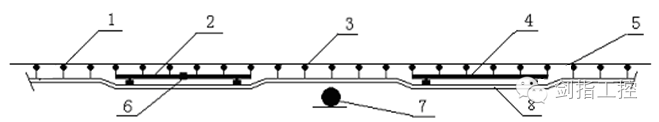 5-秤架2后的托辊;6-砝码远程加载系统;7-测速滚筒;8-皮带输送机纵梁