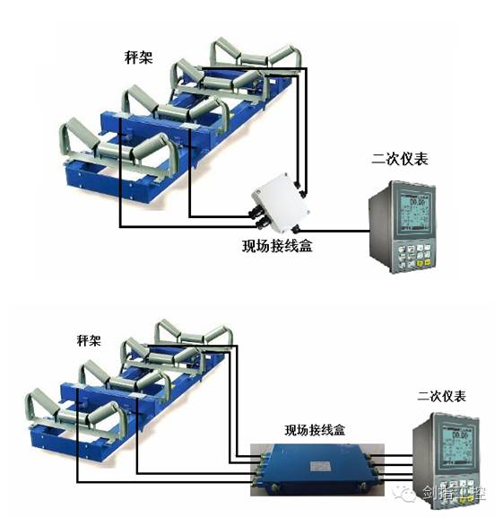 图1 多个称重传感器信号并联输出(上)和多个称重传感器信号分路输出(下)