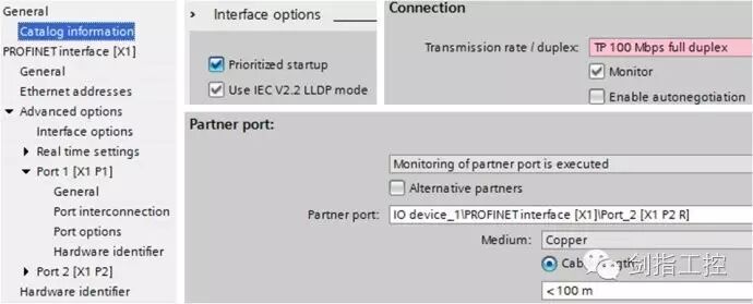 在前文描述的标准启动机制中,PROFINET IO设备的启动时间主要花费在自协商和自交叉模式识别(约3秒)以及连接建立与确认过程上(约2秒,或更长,如果分配一个不同的IP地址)。所以快速启动机制就是专门针对这两块时间进行了流程优化,其主要思路是禁止网络端口自协商和自交叉,并优化连接建立与确认过程。所以在相关调试手册内,您会看到以下关于设备网口与功能参数的设置: