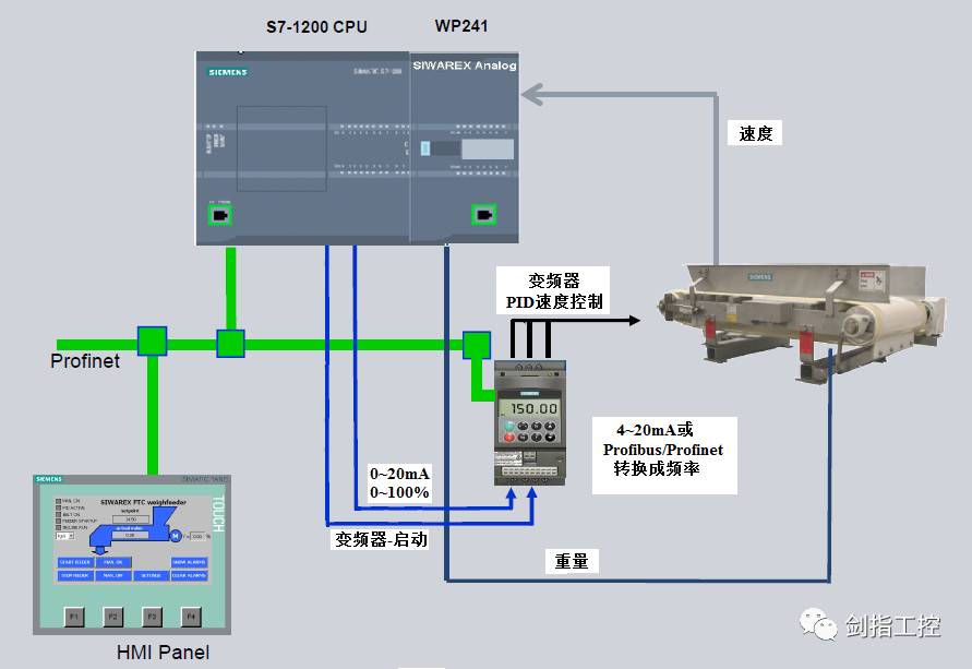图5-4 定量皮带秤集成到SIMATIC S7-1200控制器中运行的方式