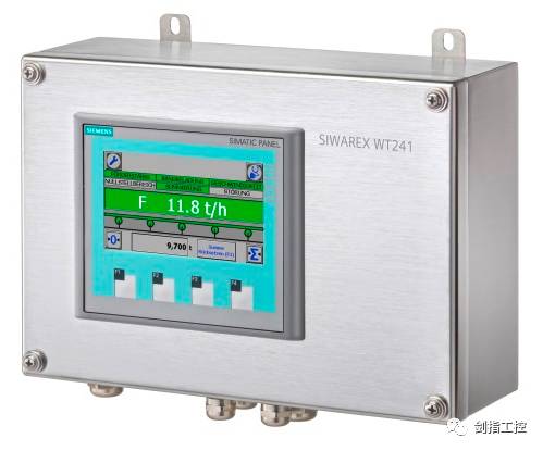 WP241称重模块较早期的FTC称重模块更为灵活的是它可以独立于SIMATIC S7-1200运行,即直接连接HMI之后,具备独立运行能力。如图5-5所示为WP241称重模块与带用户专用应用软件的HMI组合在一个箱体内,构成可独立运行的SIWAREX WT241称重终端。