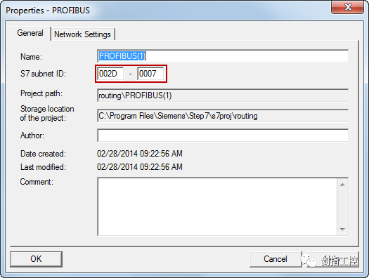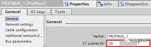 点击 PROFIBUS 连接并选择 “ 属性 > 常规 > 常规 ” 进入到 STEP7 V5.5 项目 S7 子网 ID (上文中步骤5)。