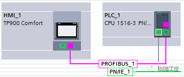 CPU 和 HMI 操作屏的 PROFIBUS 连接已建立(图1:LAN 2)。