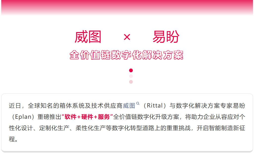 威图与易盼的全价值链数字化解决方案,以“数字孪生体”为核心,通过“软件+硬件+服务”三位一体的创新模式,实现了机柜产品在设计、采购、制造、运营到服务的全生命周期数字化、一致化和统一化。这不仅将改变传统企业的生产模式,更通过最大化复用数据,扩大企业数据知识资产的价值,构建真正的数字孪生企业。