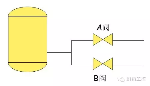 像下面这个案例中,A阀和B阀都是这个罐体的出口阀,貌似他们是“同一个世界、同一个梦想”。