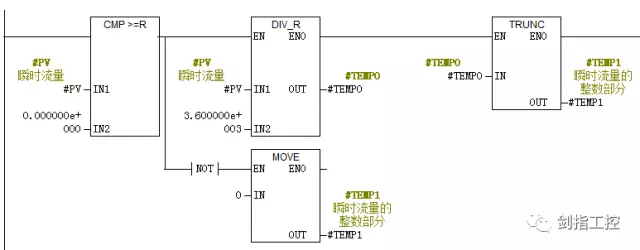 在现场我们很多时候需要在上位机上做流量仪表的累计流量显示,当然能走通讯的话最好走通讯,不走通讯的话我们需要在PLC里自己写程序,下面介绍如何写关于流量累计的程序: