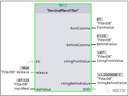 FC“DecimalPlaceFilter”可实现提取实数的整数部分和小数部分,并将其输出为字符串值。