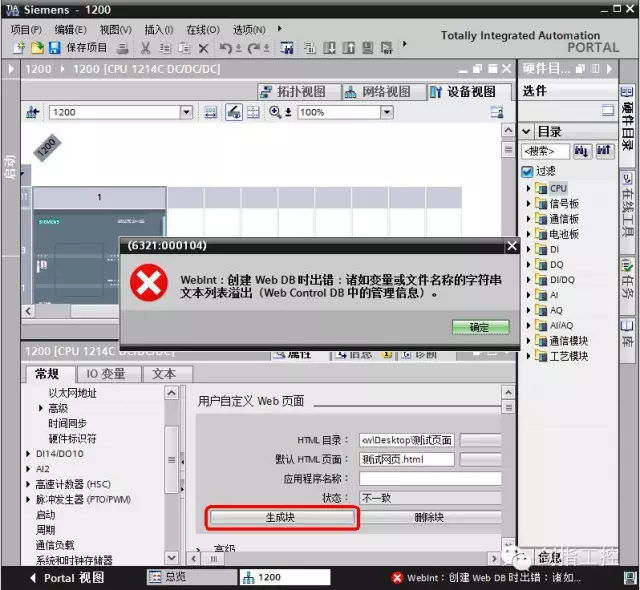 “剑指工控”特邀请SIEMENS自动化官方认证专家“剑忠”专门开辟西门子技术专题,与大家共同学习与探讨!本期话题:使用 TIA 博途创建自定义Web页面为什么报错误:“创建Web DB失败”